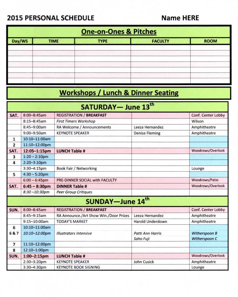 Color Word doc.-2015 Personal Schedule Published June 5, 2015 at 2543 × 3175 in UP!–NJSCBWI 2015 Conference Personal Schedule Template for Download!