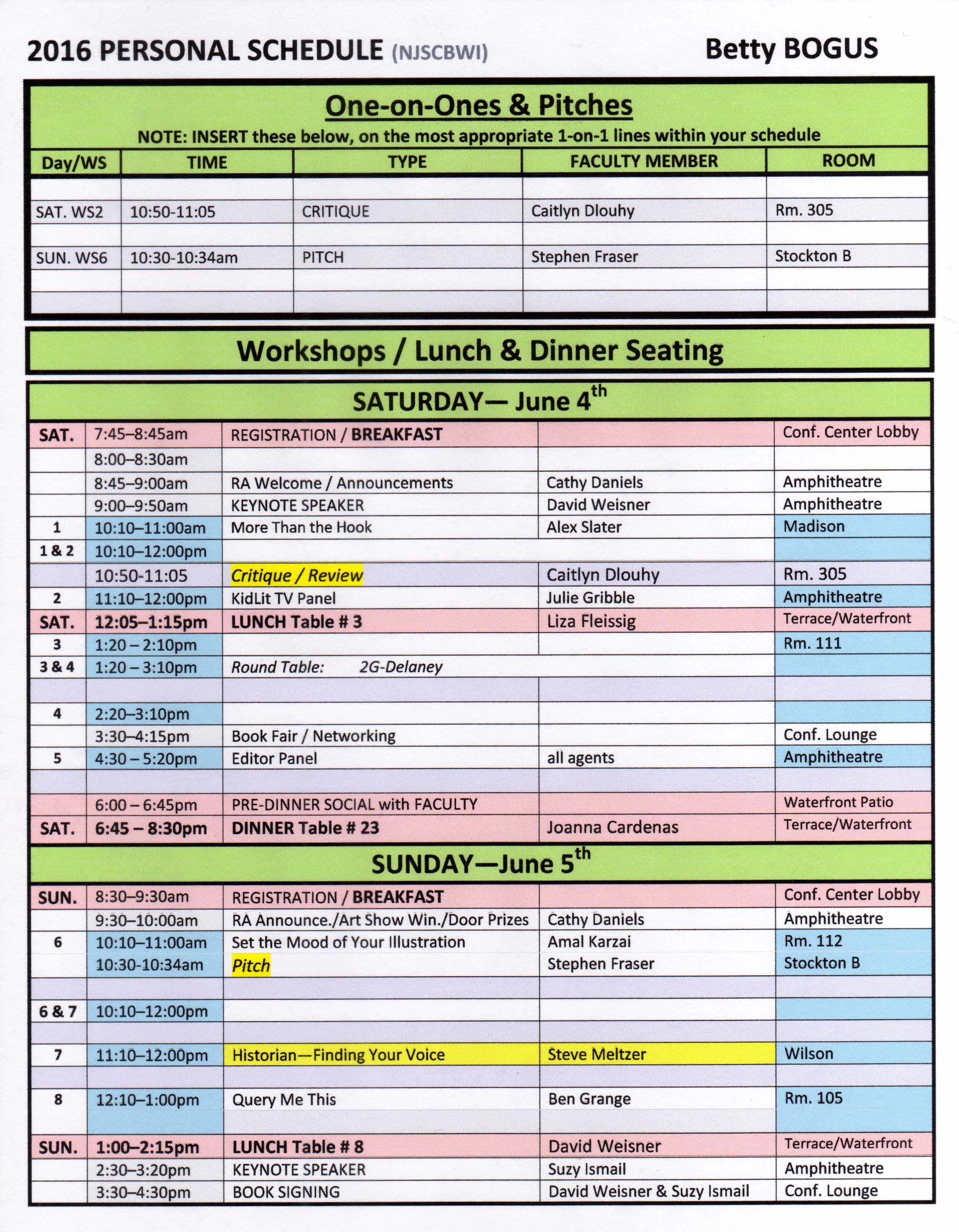 BettyBOGUSpersonalSchedule Published March 17, 2016 at 2508 × 3221 in UP!–NJSCBWI 2016 Conference Personal Schedule Template for Download!