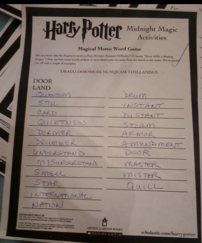 Word Game-mine Published August 1, 2016 at 1178 × 1416 in UP!–The “HARRY POTTER” Clock Strikes MIDNIGHT!
