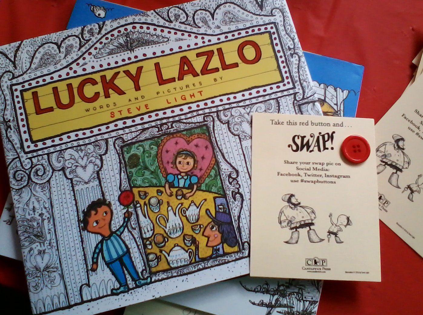 steve-lights-lucky-lazlo-swap-button Published September 30, 2016 at 1397 × 1040 in UP!–Princeton Children’s Book Festival 2016!
